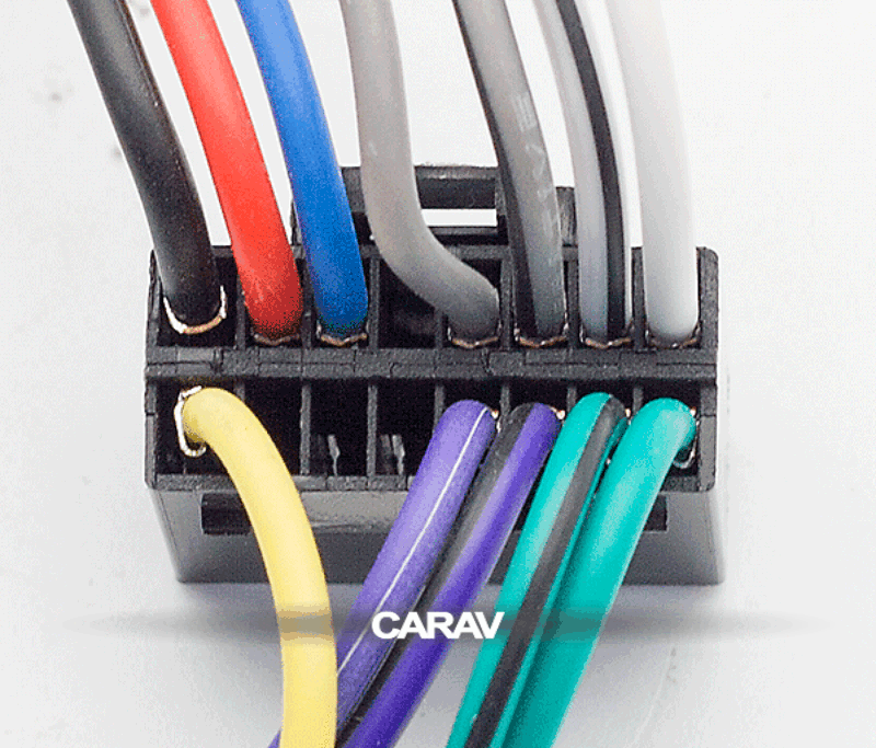 16-pin connector (female) <---> CARAV <---> ISO (male) Power & Speakers