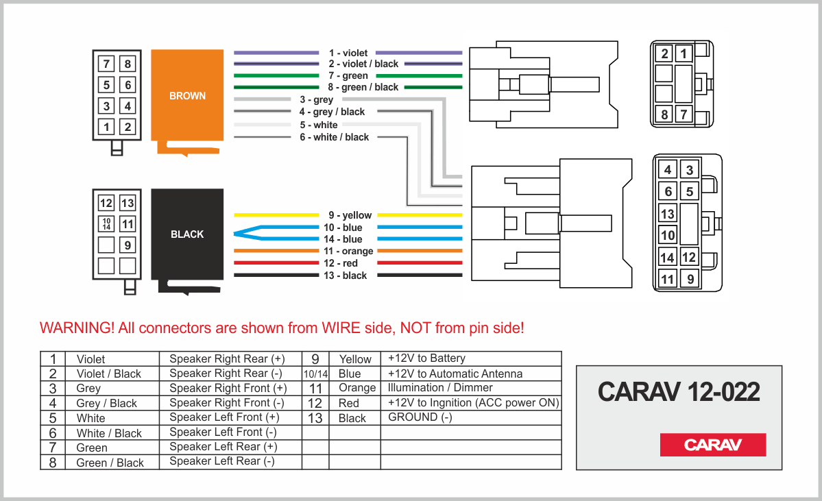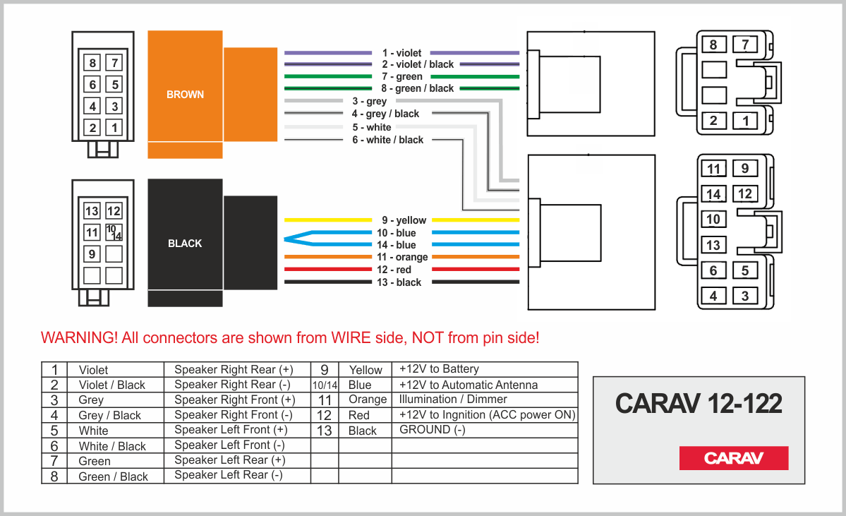 Connector OEM (female) <---> CARAV <---> ISO (male)