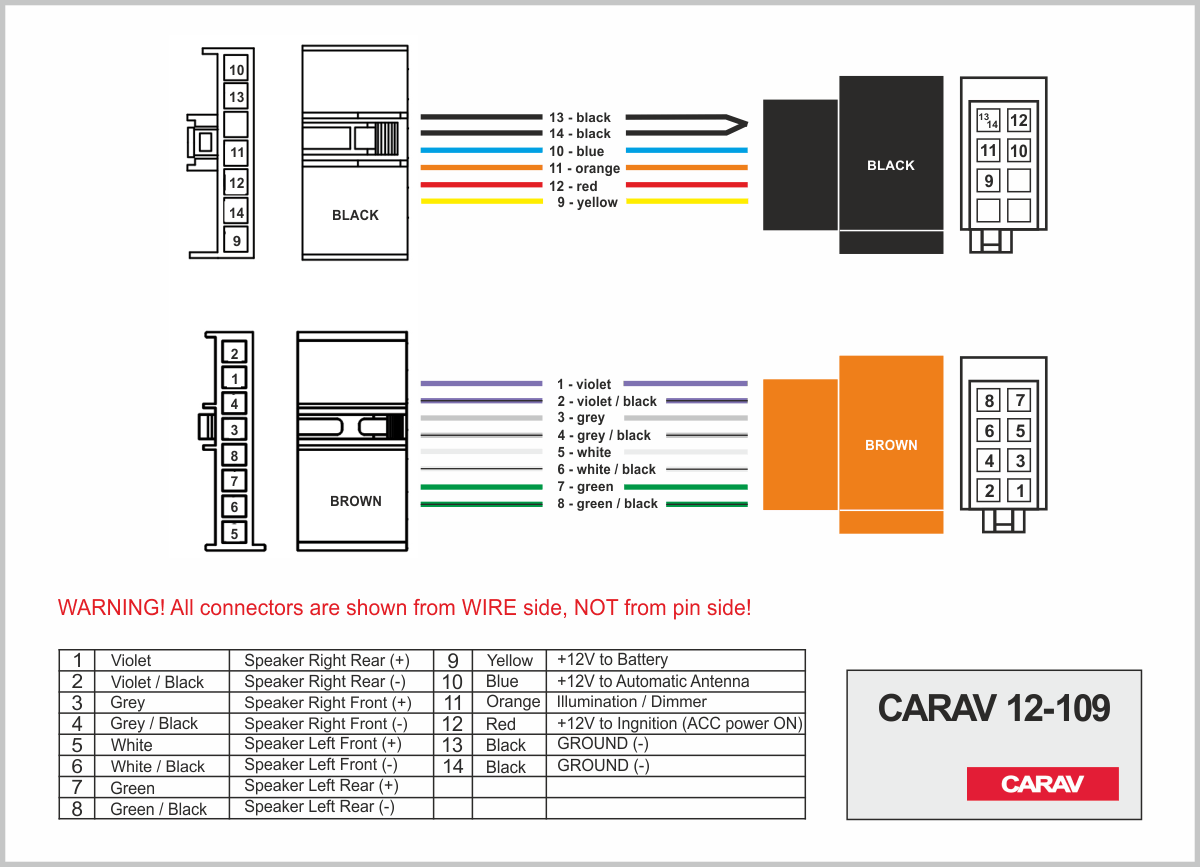 Connector OEM (male) + ISO (female) <---> CARAV <---> Connector OEM (female) + ISO (male)