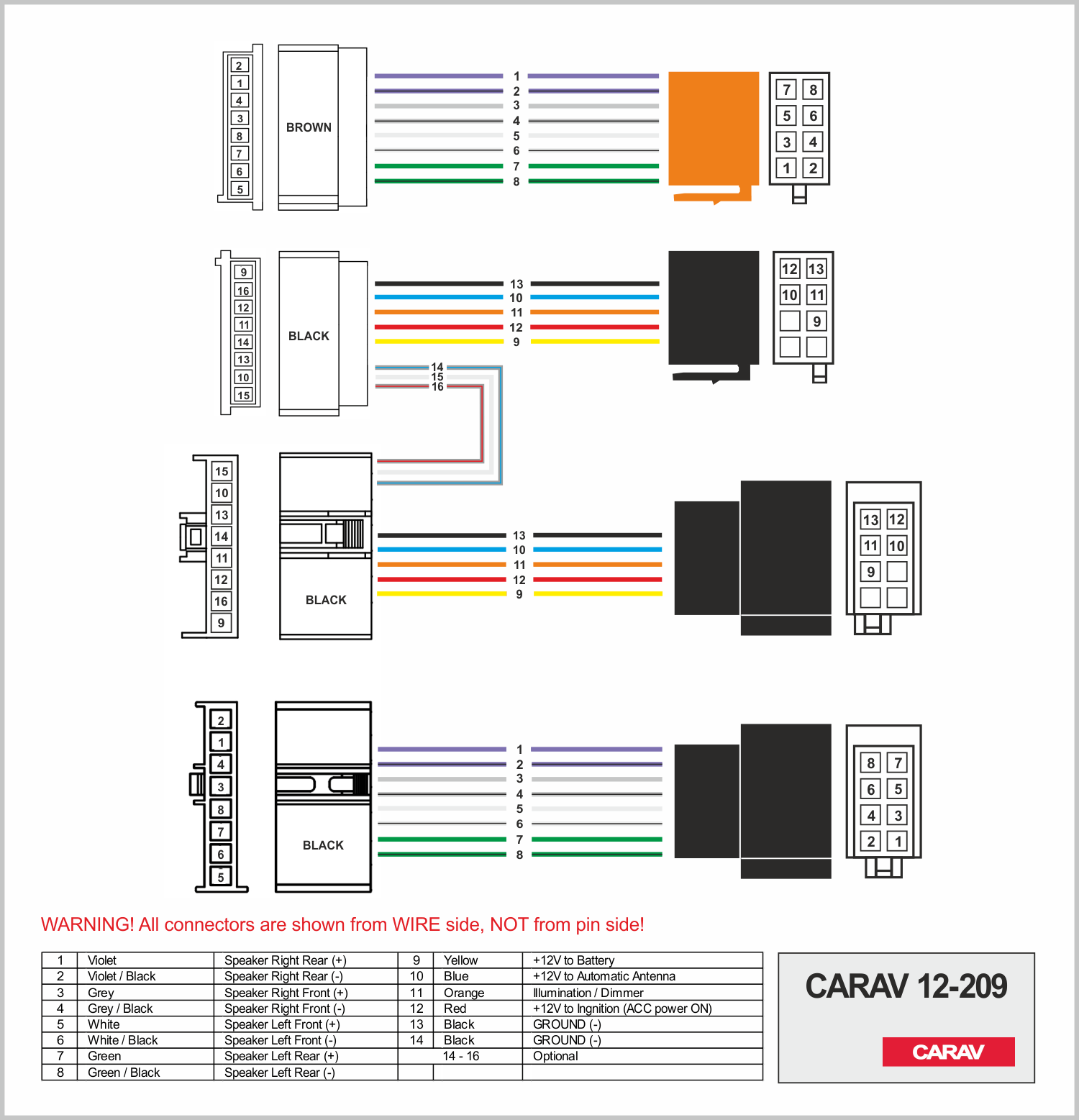 Connector OEM (female) <---> CARAV <---> ISO (male)