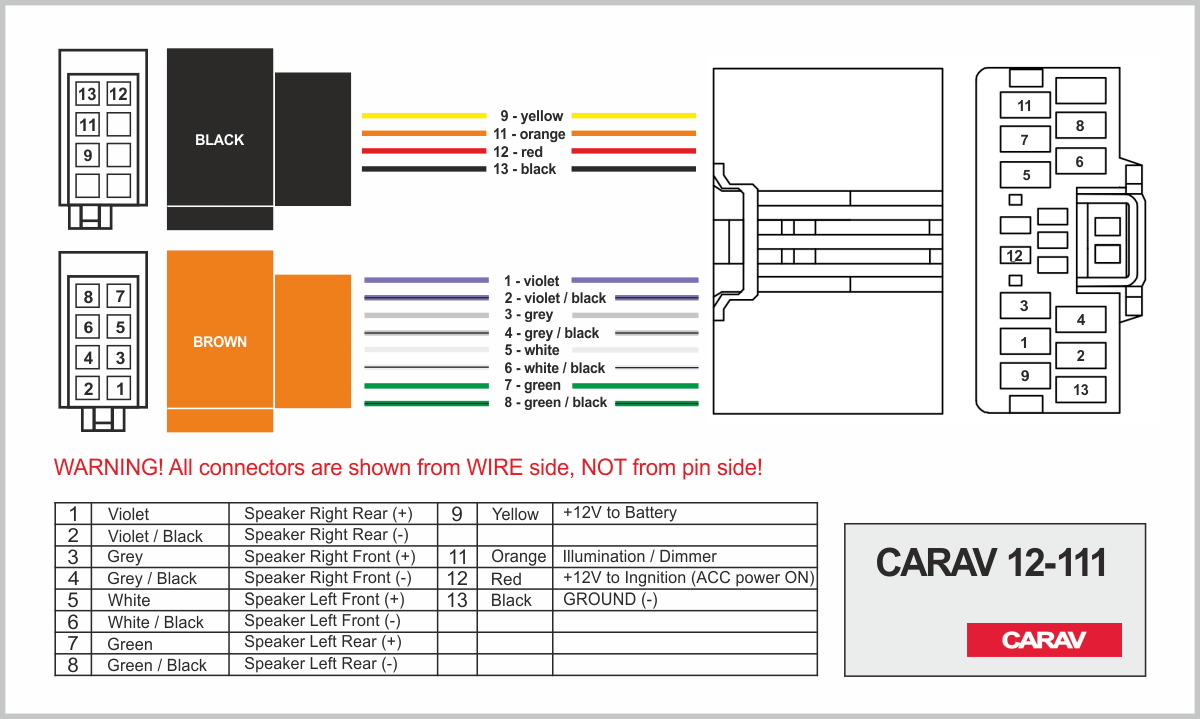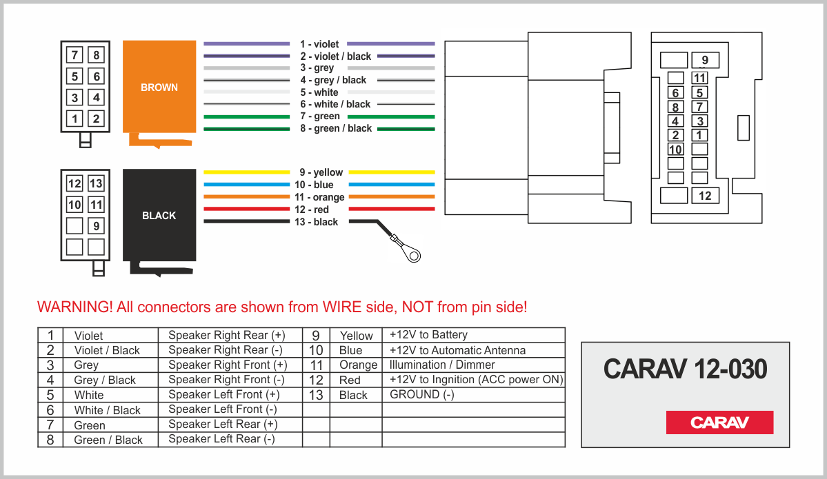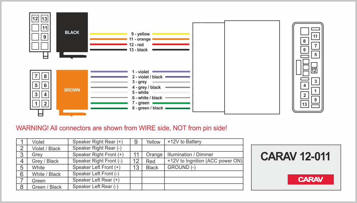 Connector OEM (female) <---> CARAV <---> ISO (male)