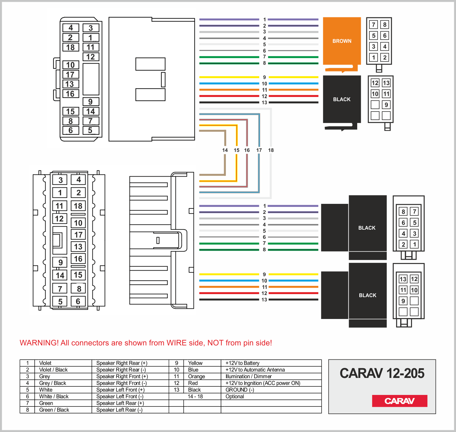 Connector OEM (female) <---> CARAV <---> ISO (male)